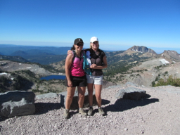 Much to my surprise, Denise was up before me this morning at 5:45am! What's up with that - I'm the morning person and she's the sunflower that slowly opens. However, I'm not going to complain about waking up to a cup of coffee handed to me. Okay, I can see this is going to be the beginning of a beautiful friendship...Our goal was to hit the trail for the peak of Mt. Lassen early and we certainly attained that goal. We were the first ones in the parking lot, but by the time we got situated (backpacks loaded up, feet taped up, one last pee stop) someone else actually started the climb before us. The climb was actually not bad compared to yesterday. It's a steady up with a lot of switchbacks. Yesterday's hike was just plain straight up for a good couple of miles. We were hoping to reach the peak within two hours and were on track when..doh! an obstacle prevented that from happening. A real obstacle, a metal gate. We were so close to the top but the last .9 miles was closed off for trail repair. Bummer! However, we saw that the trail will be opened for full moon hikes in August or September. We vowed to come back and own the peak. (Thomas you don't know this but you are already recruited to make this trek with us). We were back at the winniemobile much sooner than anticipated so after some reconnoitering we decided to head for Burney Falls and get in a bike ride and perhaps another hike. Yes, we are two girls ready to feel the burn. Once at Burney Falls, we checked out the Visitor's Center, watched a video and got some great ideas on how to spend the rest of the day. We took a short bike ride to the cemetery to see where the McArthur Brothers or Sam Burney was buried, the co-founders of the park. Much to our surprise neither were buried there. Oh well, good ploy to get us moving. The ride back was a bit uphill in the blazing sun. (Oh yeah, we needed another layer of dust to top off the Mill Creek and Lassen Peak hikes). We continued on the bike ride down to the lake and had quite a climb back up. If there is a God, our quads HAVE to look better after this trip! We both agreed that if we were going to continue to ride together in the winniemobile that showers were a must. Late afternoon showers...ahhh best damn .50 cents we ever spent! On the bike ride we ran into a park ranger and asked about the evening program. We decided to join him for an early evening hike around the falls up to the headwaters. He was disappointed that we couldn't join him for the old fashioned campfire sing-a-long tomorrow night. Oh and how I love to belt out "On Top of Old Smokey!" As Ned always tells me, what I lack in tone I make up in enthusiasm! The hike began at 6 and lasted for almost 2 hours. We started at the top of the falls and walked to the headwaters. Pretty amazing that millions of gallons of water pour over the falls each day all originating from tiny springs about a mile upstream. The ranger identified plants and provided great tips such as how to tell where the sun will be in a hour's time. Handy bit of knowledge when you're hiking. We totaled up the day's hiking miles and we figured a little over 7 miles. Not bad considering a lot of it was uphill. We are going to see how we feel tomorrow and maybe do a hike before we take off for Oregon. We are having a blast taking photos and blogging together. (Hint to Chuck. I think Denise would LOVE an ipad for her birthday - wink, wink - let's talk). Let's see if Ms. Earlybird is going to bring me coffee again. Mmm, better not push my luck.