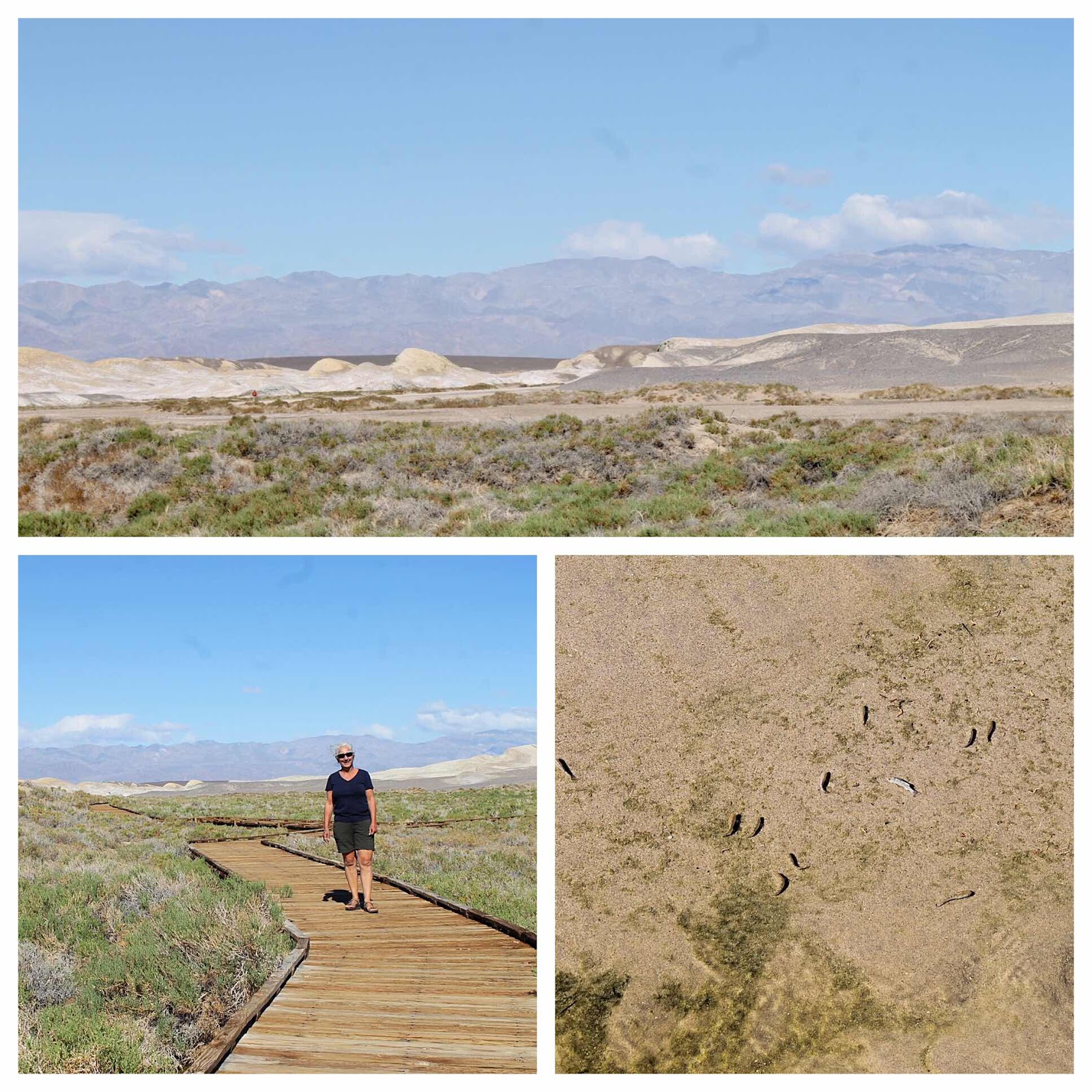 Traveling out of Death Valley this morning we took a walk along Salt Creek. So fun to see hundreds of the elusive pupfish. (Josh & Marlina wish you could have seen them after we searched to find just one!).